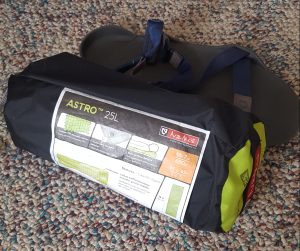 After reading all of the reviews about the different sleeping pads and considering the cost vs weight, I decided on the Nemo Astro Air 25L. The reviews on this pad raved about how comfortable and light it is. It is very light at only 23 oz, and packs down to only 9.5 x 4 in. It comes with the stuff sack (shown), a velcro compression strap, and a repair kit.