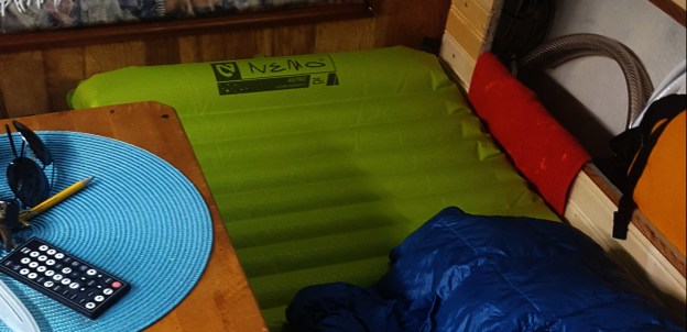 For the last three nights I have been testing to see how comfortable it really is. The first night I aired it up all the way and it was too firm. The second night I let out too much air and it was flemzie. Unlike in a story book, the third night was not perfect. This is exactly why I am testing it out. I want to be accustomed to sleeping on it prior to riding. I will say, I am glad that I chose the 25 over the 20. This gave me plenty of room to try every sleeping position i know to get comfortable. This pad does have one thing over the 6 inches of memory foam on top of the 6 inches of boat cushion that I normally call a bed. It is 76 inches long, about 8 inches longer than my v-berth bed and 6 inches longer than me. AND! It is not shaped like a triangle. Time will tell…