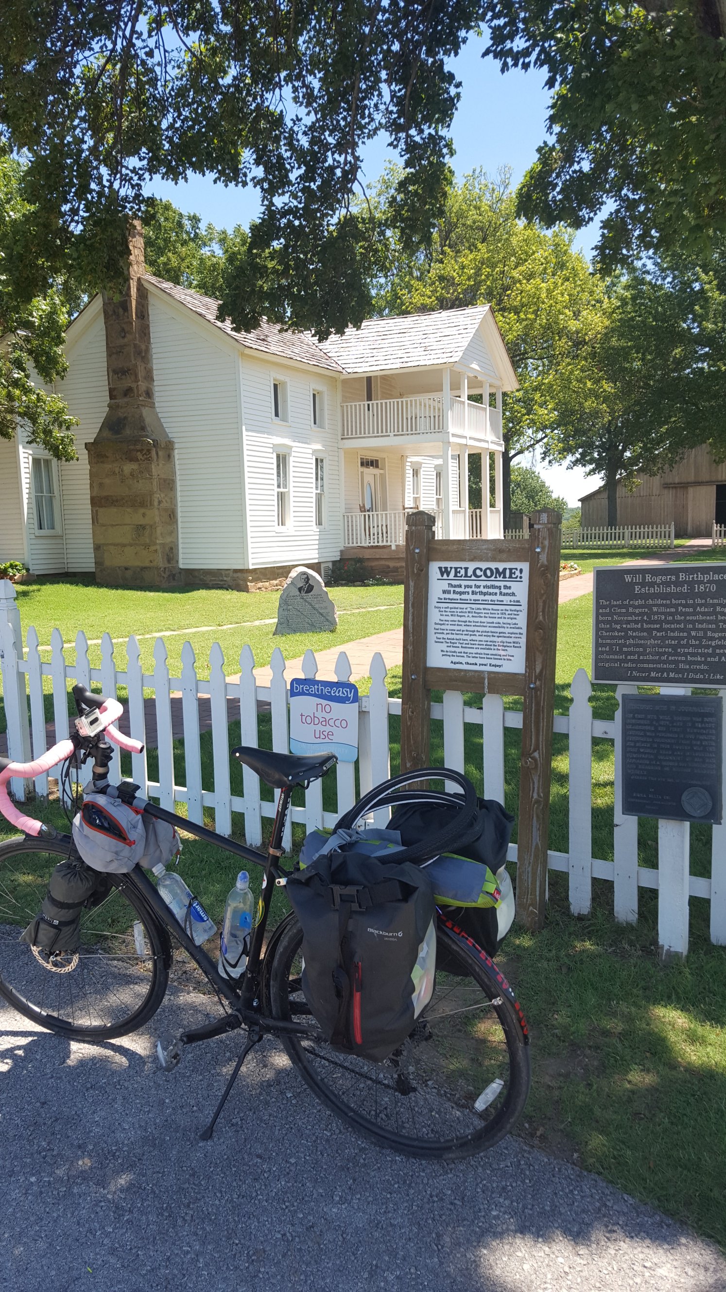 I did not leave Chanute till after 11 and by then I was already getting hungry.  About 10 miles down the road was Will Rogers’ birthplace, the Iron Dog Ranch.  This place had A/C, cold water, bathrooms and a great view.  Perfect stop for lunch.