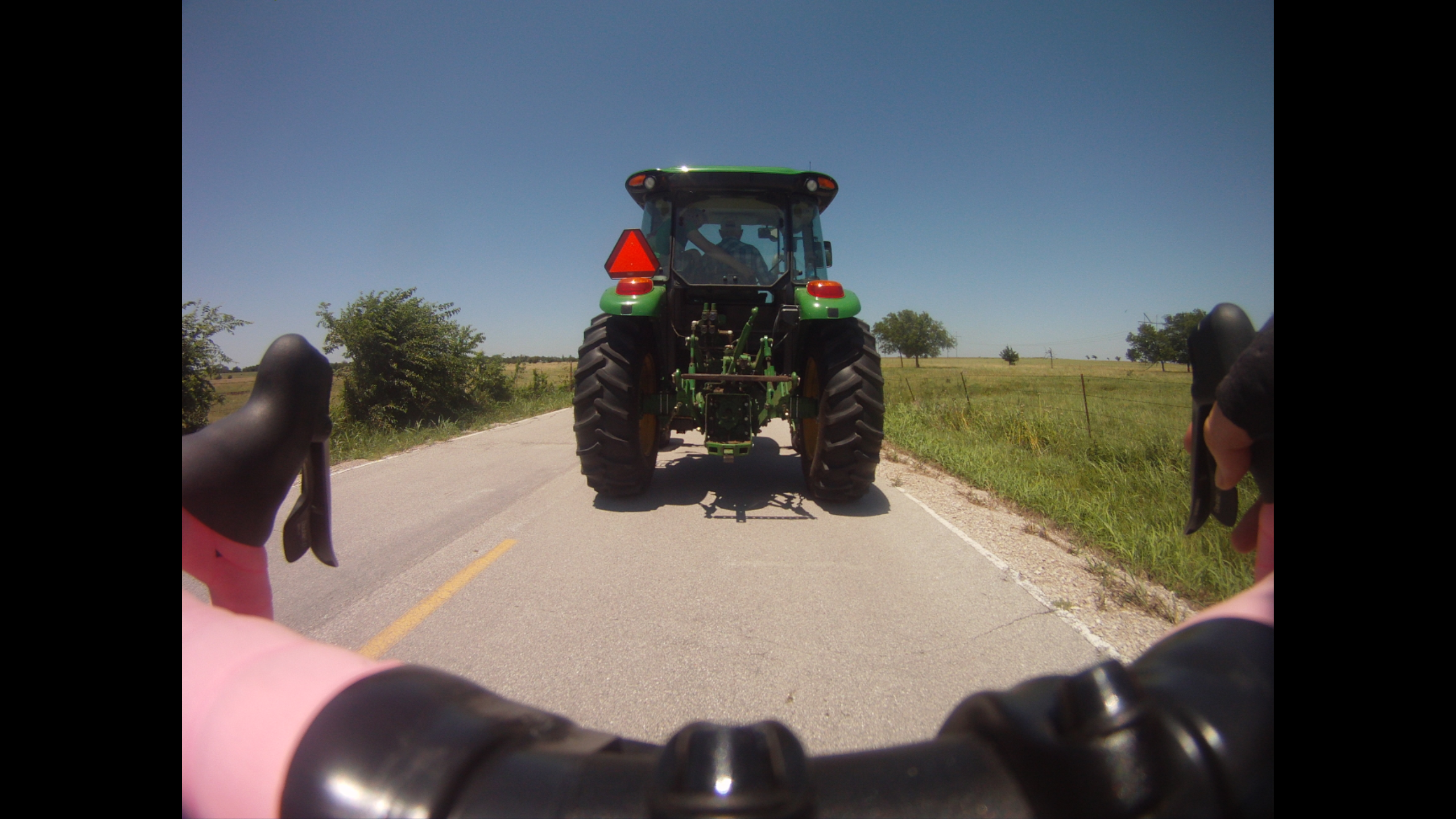 I stayed on some of the county roads to avoid the 18-wheeler trafffic.  Instead I found tractor traffic.  This kid and his grandpa were super cool.  They slowed down to let me pass, but when I told them to keep going, they pushed the tractor up to speed and I got a nice draft for several miles.