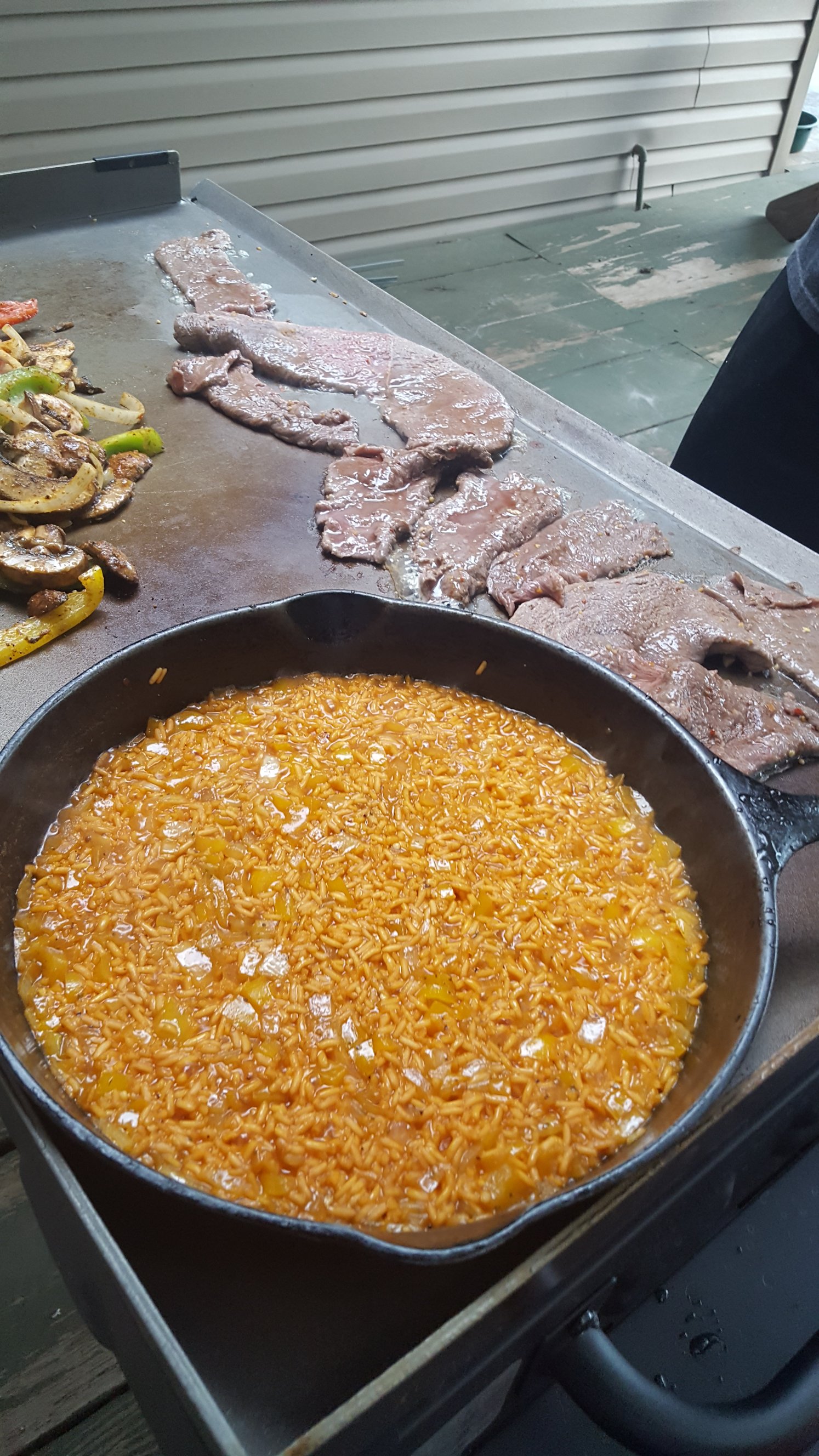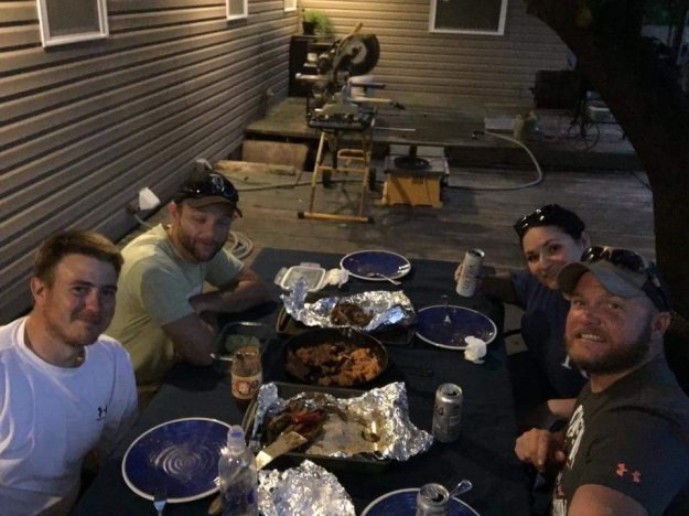 Everything came together perfect that night. Mike’s new griddle arrived just in time to cook dinner outside and a storm rolled in, cooling it down and lowering the humidity. We ate dinner out on the patio with the cool breeze. The clouds even waited for after dinner to start the rain. We spent the rest of the evening under the covered porch watching the storm and talking. Actually, they watched the storm and talked. I was in a chair trying not to fall asleep.