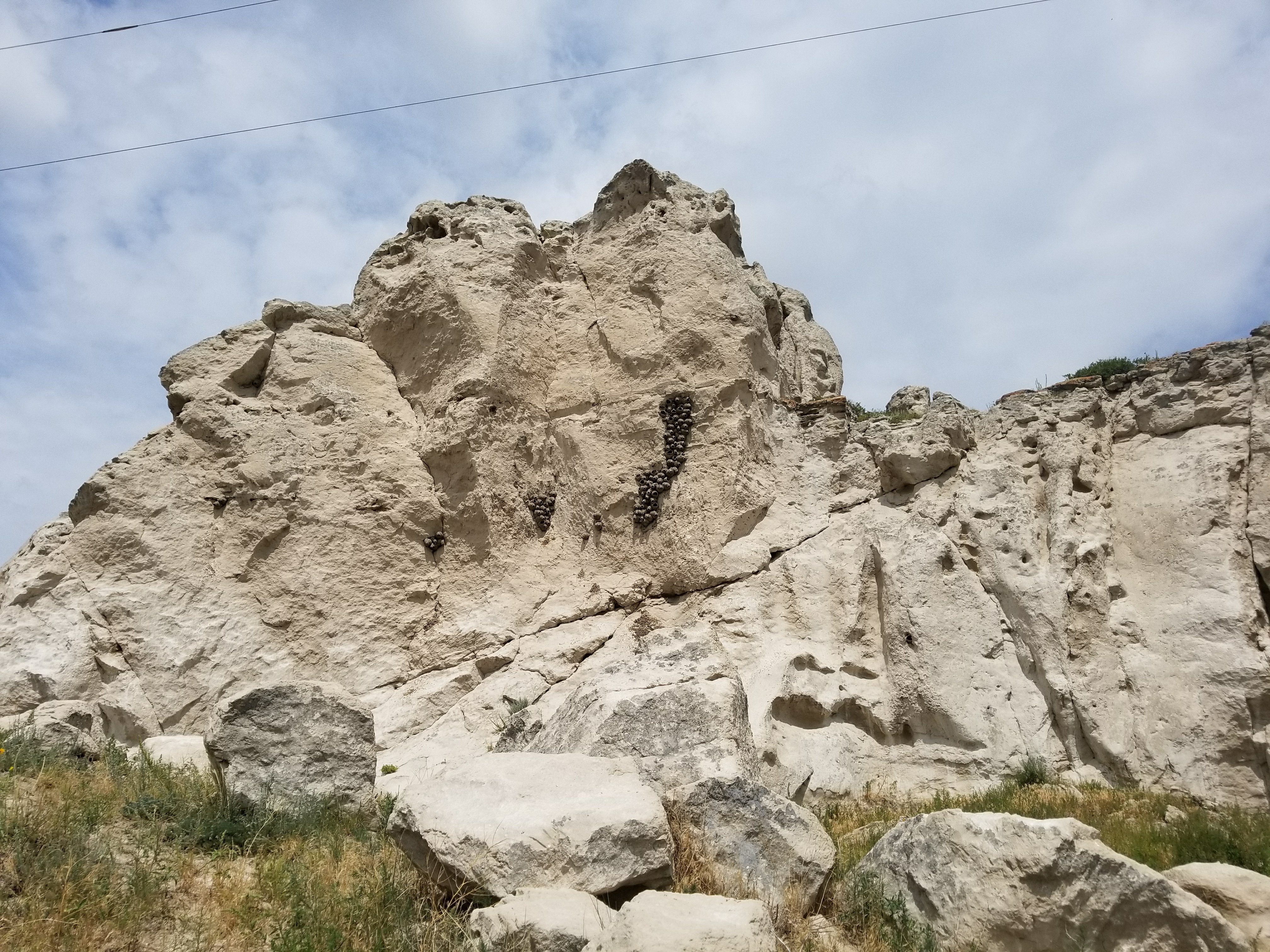 Only nine miles to the border and no more Nebraska! There were more and more rock formations after crossing the border and I saw my first pronghorn of the trip. I also started seeing more cacti, but no prickly pears. I climbed up to one of the rock formations to see it covered in swallow nests.