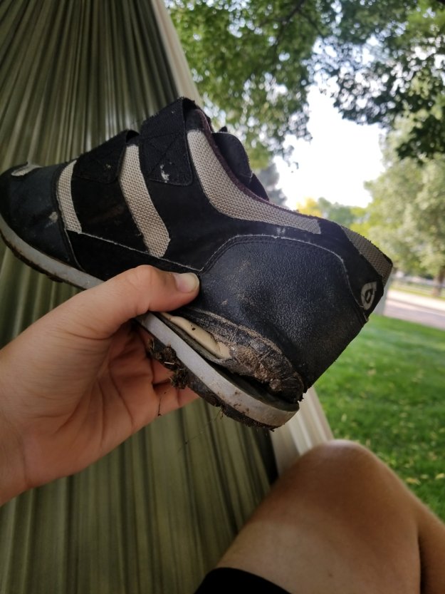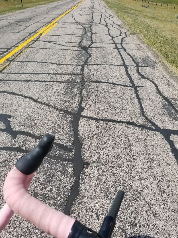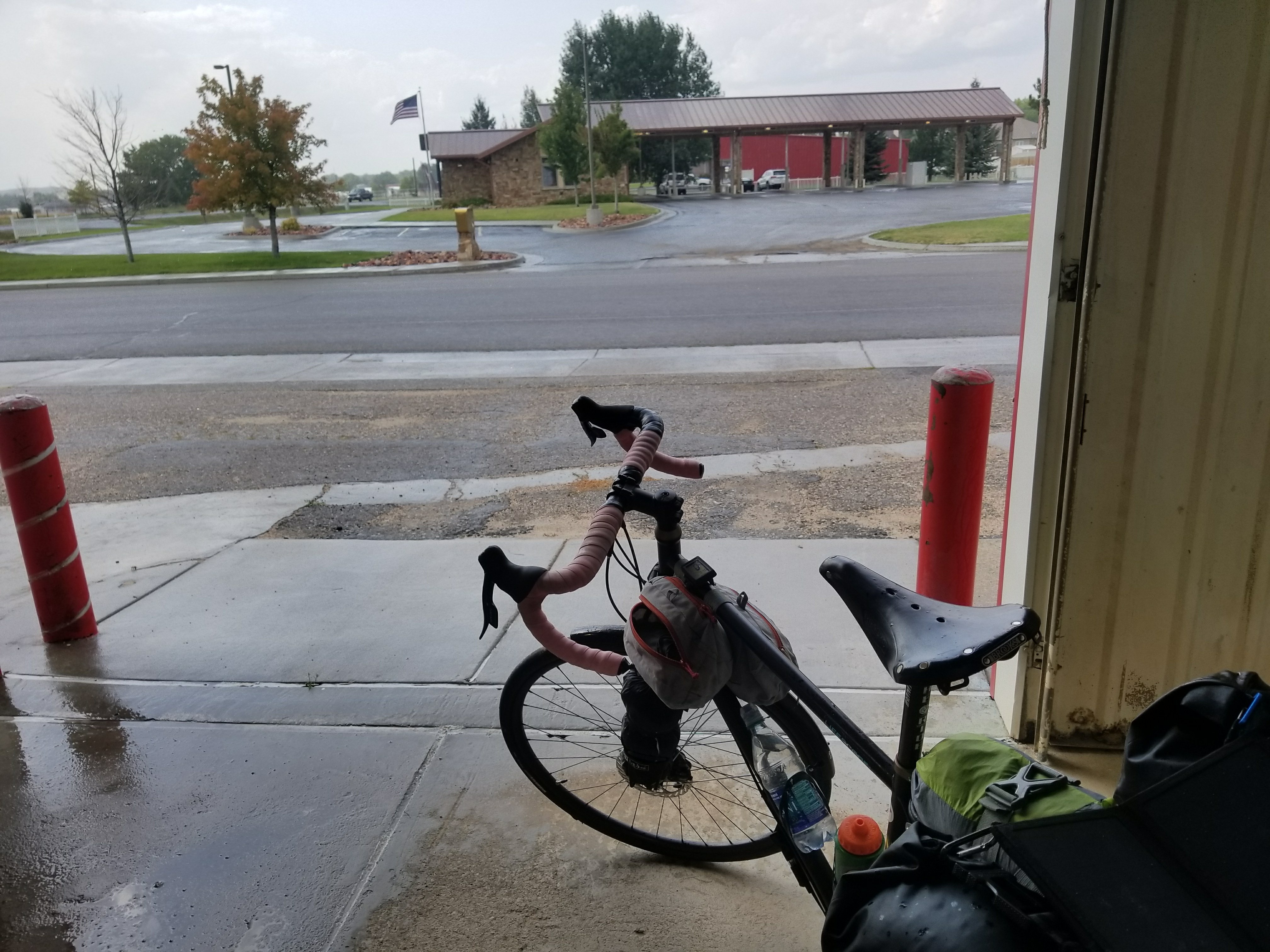 That morning, I woke up at 6 and the rain had started again.  It rained until 3 pm and I stayed inside the tent the whole time.  I went through all of my peanut butter, snack bars, and tortillas.  All that was left was a jar of honey and some dry cereal.  I probably could have made it to Casper before nightfall, but decided to make a day of Douglas.  I went to the grocery store and loaded up on food and then to the laundry mat.  There I met a couple of guys that followed and crewed at music festivals.  They were living out of a small Toyota truck with a bed cover.  They were nomads, some might say hippies.  They did offer to get me stoned but I decided against it.  One of them said that they pick up a lot of extra gear after each festival and that they had camping gear they were sorting through.  When he mentioned the lot of stakes I offered to buy them off of him and he just gave them to me.  Now, I have almost too many stakes! They invited me to winter with them in California at a nomad camp called Slab City.